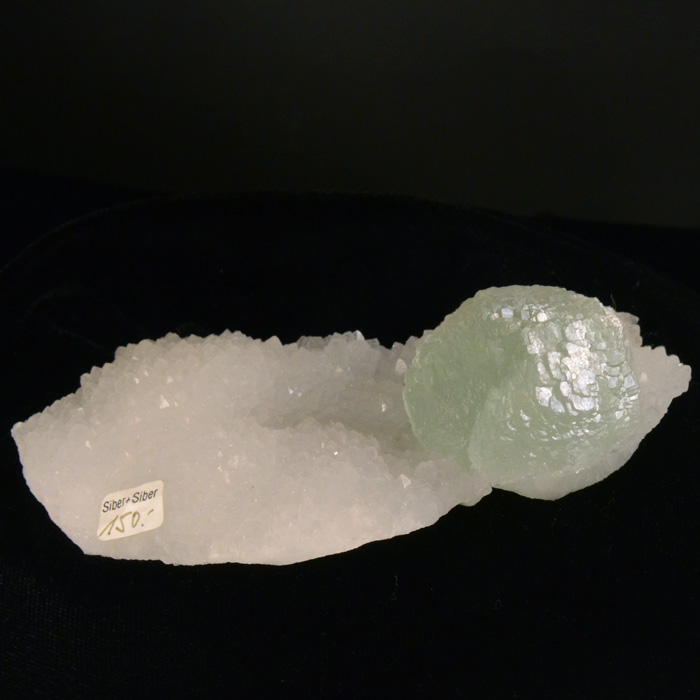 Interessantes Detail: Der Quarz zwigt auf der Unterseite Abdrücke von sehr grossen Fluorit-Kristallen - der Fluorit ist also in zwei Generationen gewachsen.
