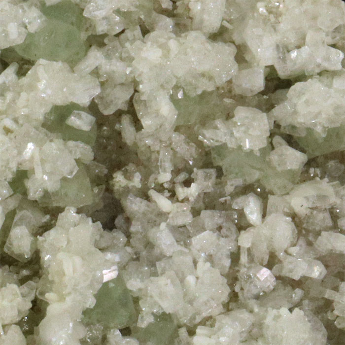 Heulandit mit perlmuttartigem Glanz, reichlich auf grünen Fluorit-Oktaedern aufgewachsen. Eine typische Vergesellschaftung von der Gibelsbach-Fundstelle, die allerdings selten so ausgeprägt ist. 9x5.5 cm.