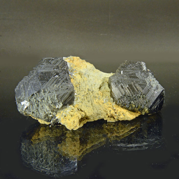 Witziges Stück eines amerikanischen Klassikers: Kleine, scharfkantige und glänzende Spessartin-Kristalle in Rhyolith-Drusen. Je Druse ein Kristall!