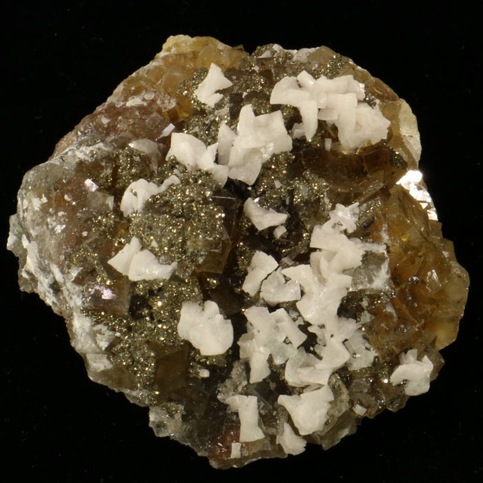 Dolomit & Pyrit auf gelbem Fluorit