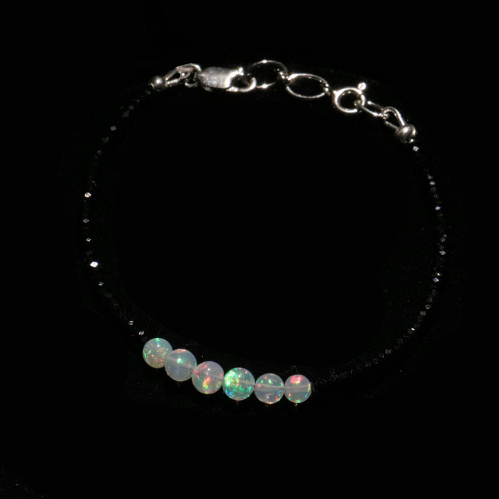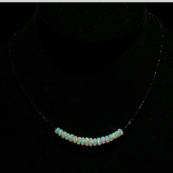 Schöner Boulderopal-Anhänger mit Querbohrung; feine Opal-Adern mit Farbspiel in Grün und Blau in braun gemusterter Matrix.