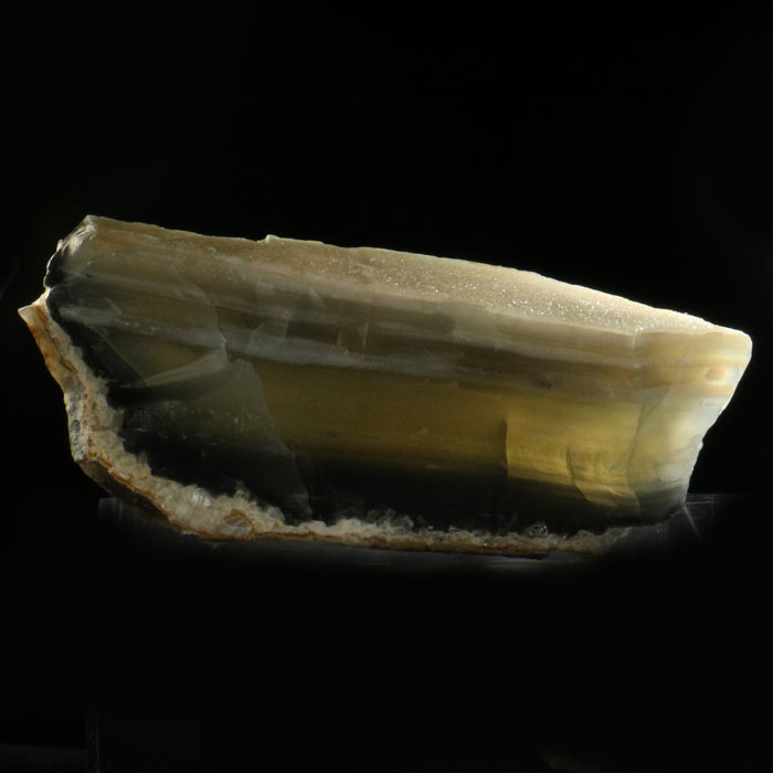 Schönes, sehr solides Rohstück eines Achats von ungewöhnlicher Fundstelle. Er stammt von der Skeleton Coast in Namibia und zeigt liniengeeraden Lagenbau. Er ist auch recht durchscheinend.