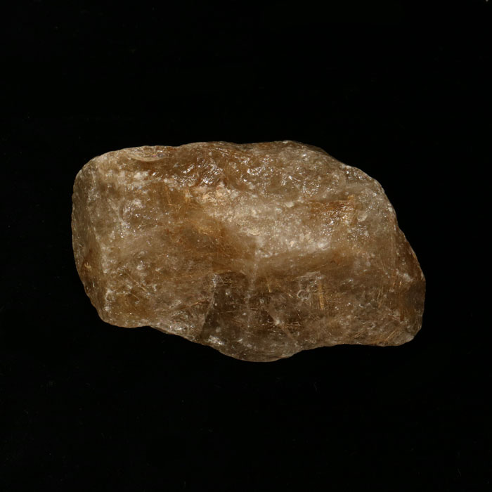 Spannendes Rutilquarz-Rohstück mit dichten, feinen Rutilnadeln in goldener Farbe. Das Stück ist ca 7 cm lang, 4 cm breit und 180g schwer.