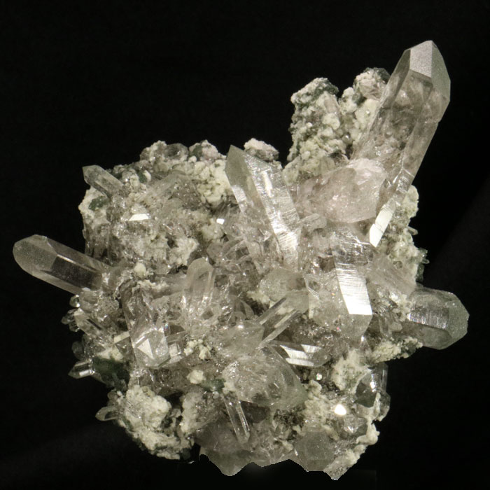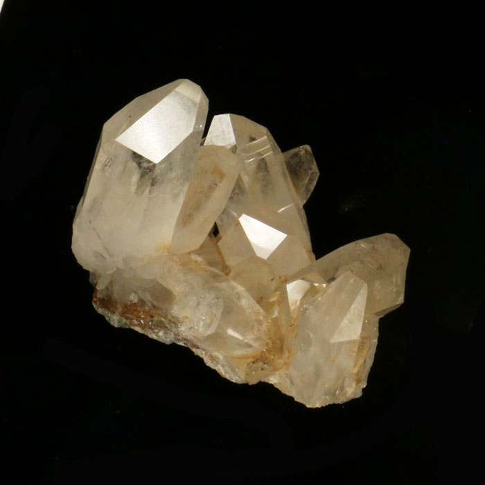 Diese Bergkristall-Gruppe aus Wergenstein besteht aus schön arrangierten Kristallen, wobei die zwei dominanten Spitzen auch schön klar sind. Nur unwesentliche Druckstellen.