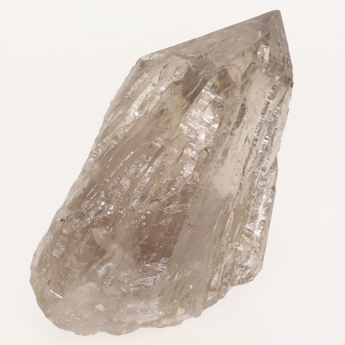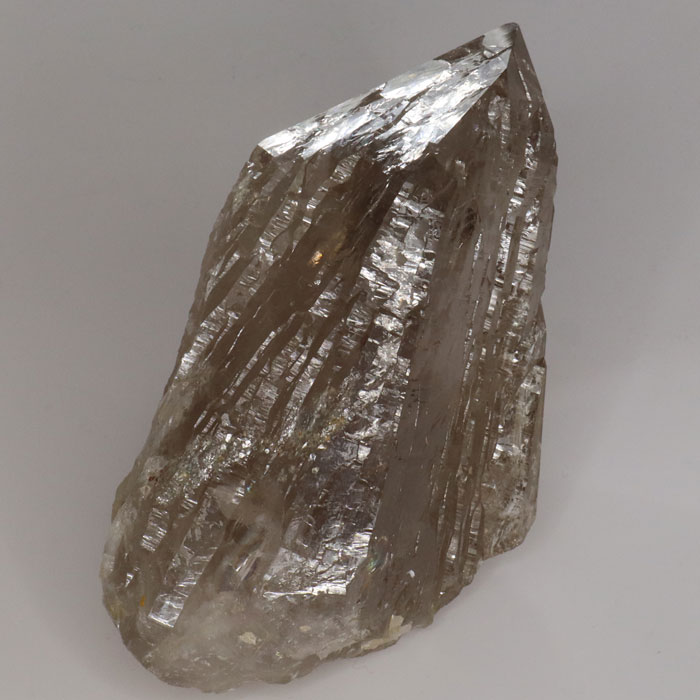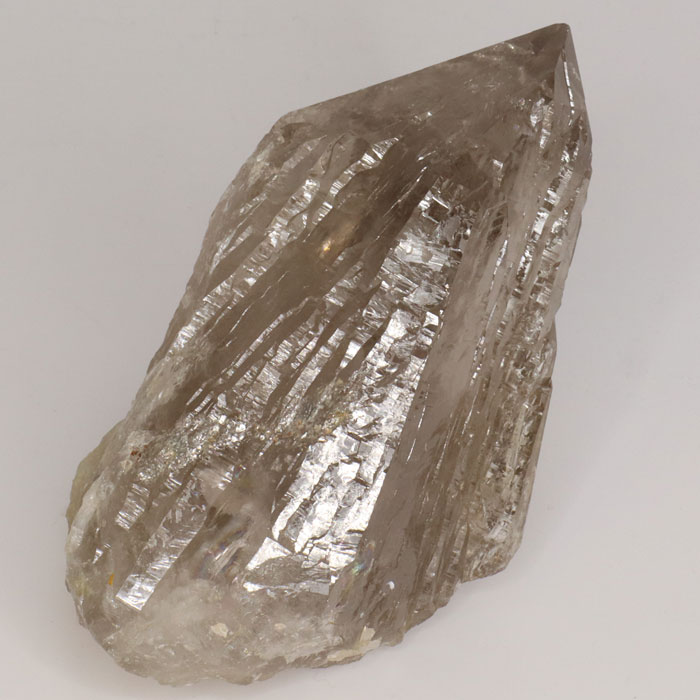 Mächtige, helle Rauchquarz-Spitze von sehr ausgeprägtem Tessiner Habitus, maximal 9 cm breit und 15 cm hoch.