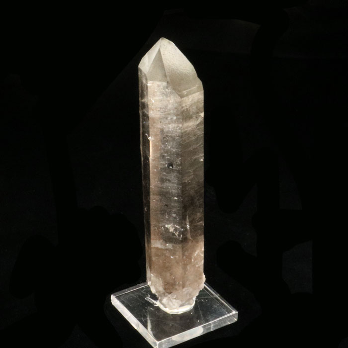 Ausserordentlich schöne, schlanke Rauchquarz-Spitze, welche vor allem in der Mitte relativ klar ist. An der Spitze befindet sich eine kleine Druckstelle.