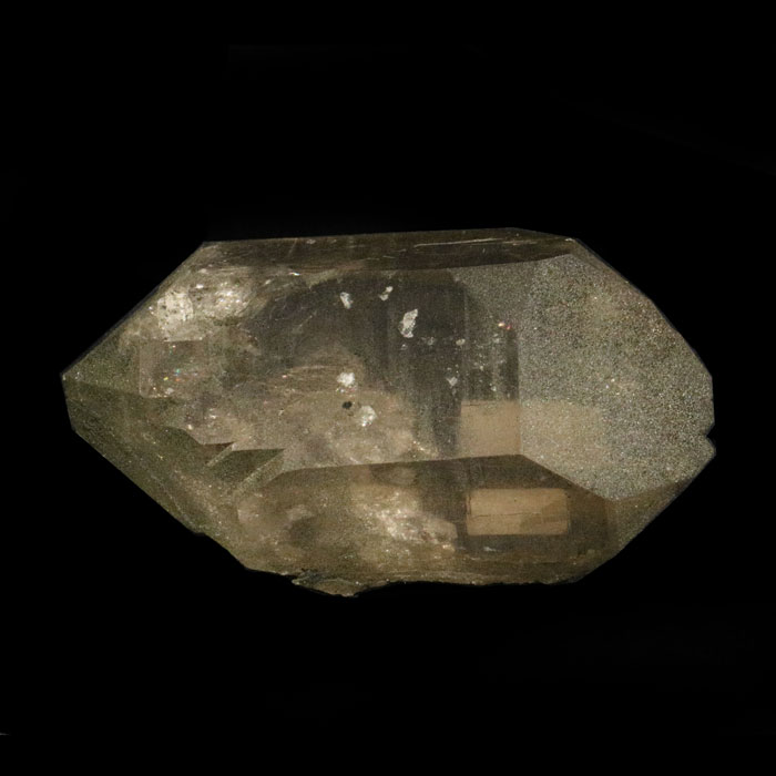 Helle, fast farblose Rauchquarz-Spitze von relativ hoher Klarheit und gutem Glanz.