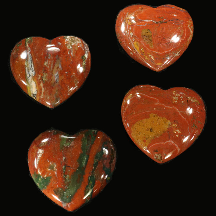 Kleines Herz aus Jaspis in verschiedenen Orange- und Rottönen, diese Farben erinnern an einen Sonnenuntergang, woher der Handelsname "Sunset-Jaspis" kommt.
