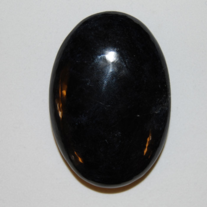 Geschliffener Massagestein (Hotstone) aus Rhodonit in rosa Farbe mit schwarzer Bänderung.