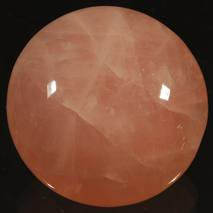 Polierte Linse aus durchscheinendem, recht intensiv rosafarbenem Rosenquarz, z. B. für heilsteinkundliche Anwendungen.