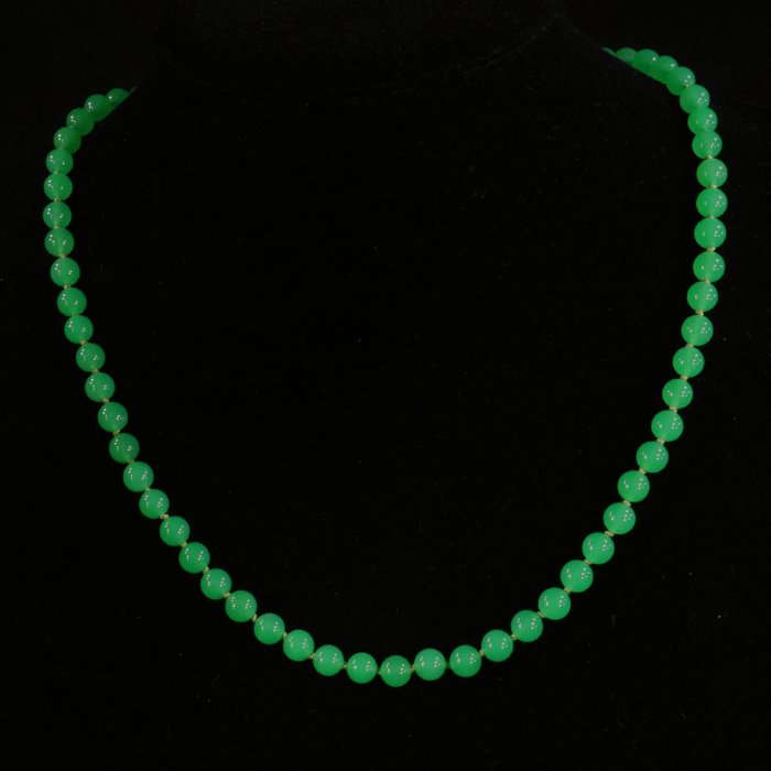 Geknüpfte Kette mit matten Kugeln (à 8 mm) aus schön gebändertem Achat, in verschiedenen Grau- und Brauntönen. Die Kette ist ca. 47.5 cm lang und hat ein Schloss aus Silber.