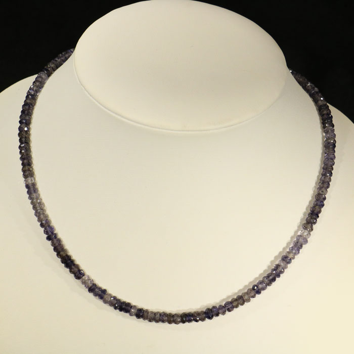 Cordierit-Kette aus facettierten Rondellen im Verlauf. Die Kette hat einen 925er Silberverschluss.