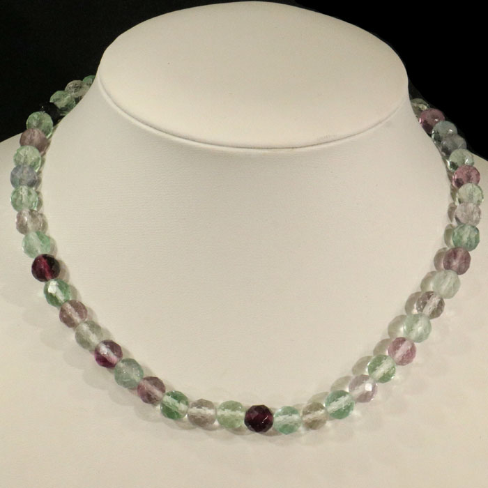 Feine Kette aus teils transparenten, facettierten Rhodochrosit-Kugeln.