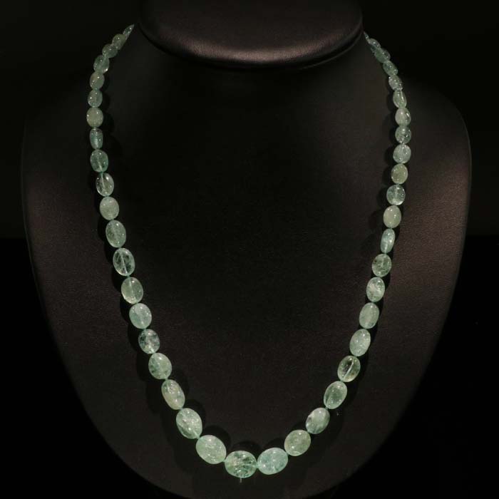 Herrliches Collier aus teils klaren Aquamarin-Linsen in einem kühlen hellen Grünblau - sommers wie winters eine Freude anzuschauen!