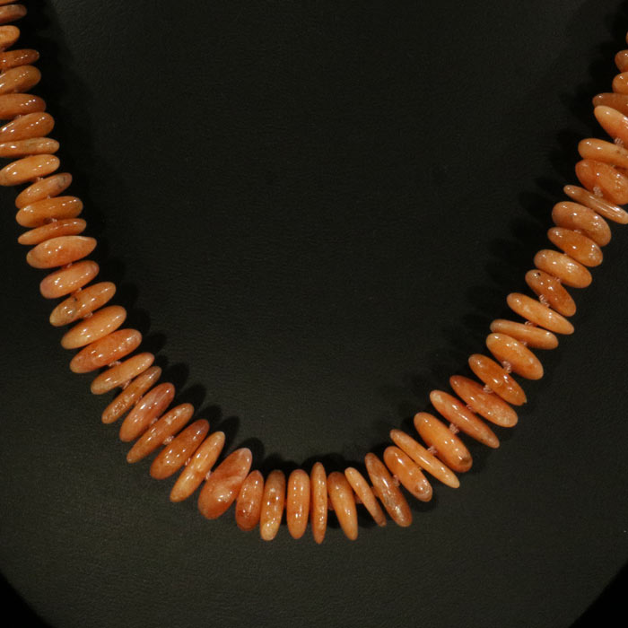 Triplit von schönem, warmem Orange, geschliffen zu flachen, unregelmässigen Rondellen, als Kette von 48 cm Länge.