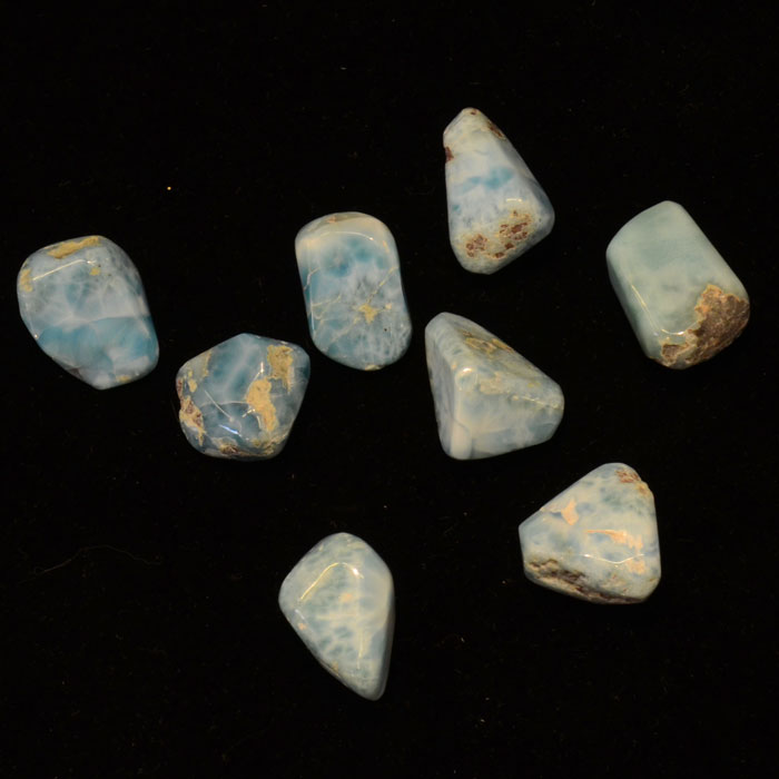 Kleine Larimar-Trommelsteine von guter Farbe.