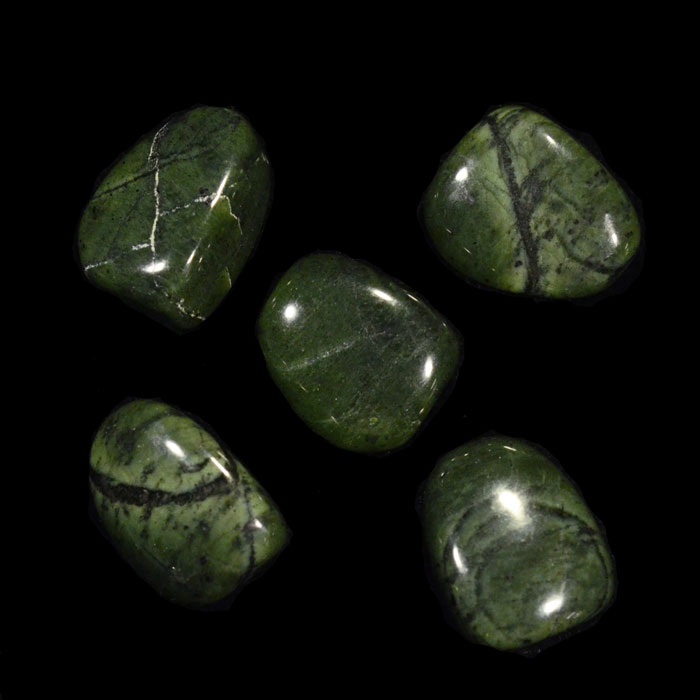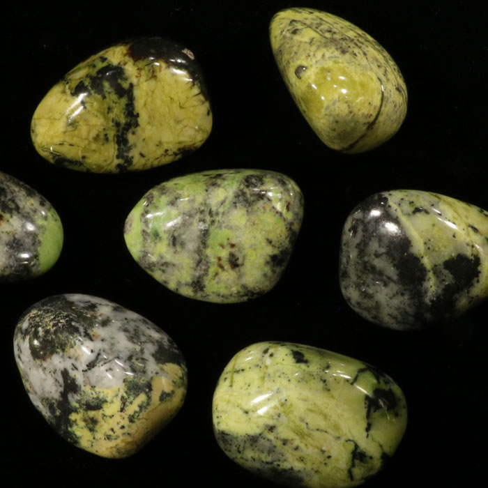 Schön struktierter Larimar Trommelstein mit Farbe von mittlerer Intensität.