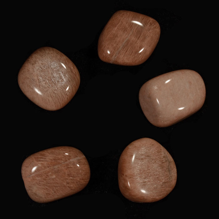 Definitiv einer der ganz exotischen Trommelsteine: orange-roter Triplit mit Pyrit, teiweise mit grau metallischem Bleiglanz und braun-beigem Wagnerit.